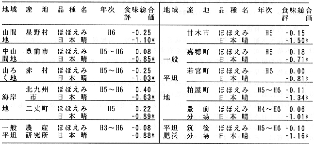 発表論文等:平成6年度農産研究所夏作試験成績概要書