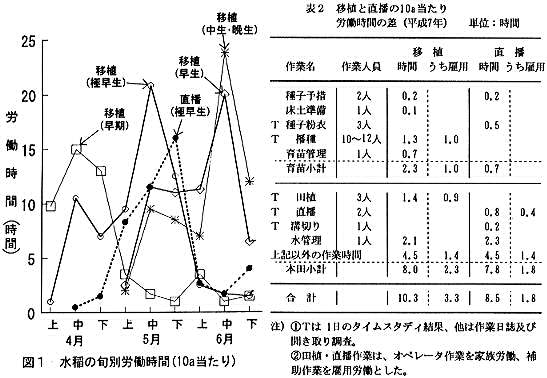 A直播栽培による雇用労働の削減は、労働ピーク時に作業の一部を雇用労働に依存している大規模稲作経営のもとで生ずる。