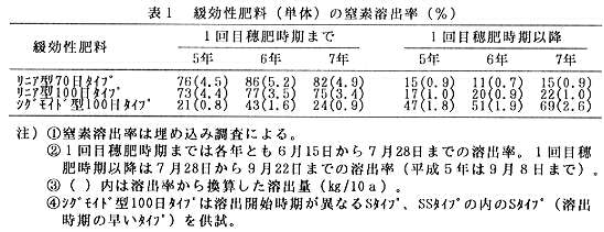 C平成5年のような低温寡照条件下では、緩効性肥料の溶出が全般的に遅くなる(表1)。