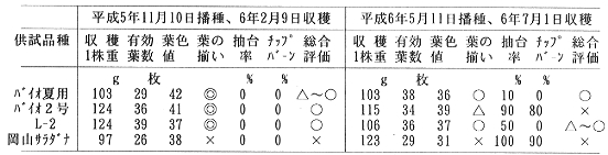 注)@供試品種は、平成5年11月10日播種がパイオ・サラダナ2号、平成6年5月