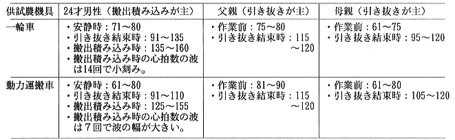注)心拍測定装置(T.K.K1850a)を用いて、収穫作業開始前の約30分前から作業終了後約