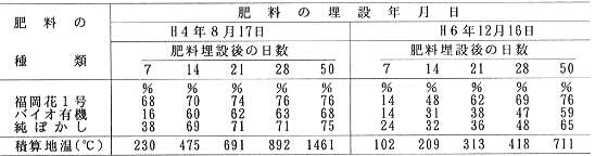 表2 キク圃場におけるぽかし肥料の窒素分解率