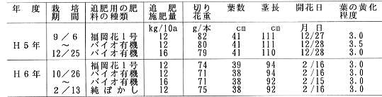 表3 電照ギクの追肥におけるぽかし肥料の施用効果
