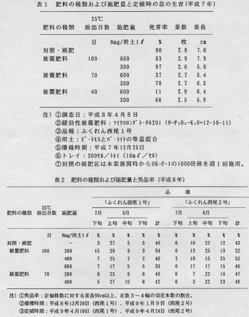 発表論文等:平成7〜9年度園芸研究所野菜花き郎花き花木研究室試験成績書