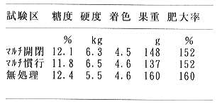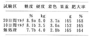 表1 マルチの処理方法と果実品質(平成6年)        表2マルチの処理期間と果実品質(平成5年)