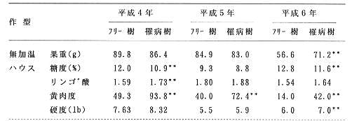 表1 ウイロイド罹病「大石早生李」の果実品質(平成3年)