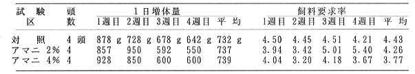 2 週間はエネルギー摂取量が増加するため、増体量は良くなり飼料要求率も向上する。その後、過剰のエネルギー摂取量を飼料摂取量で調節するため、飼料摂取量が少なくなり増体量が減少する。(表1)。
