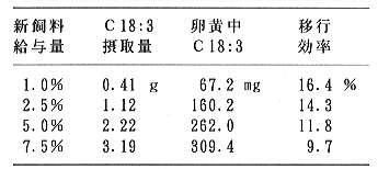 表4 α−リノレン酸の卵黄への移行効率