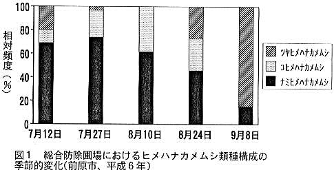 @ナス圃場ではヒメハナカメムシ類3種の発生が確認され、このうちナミヒメハナカメムシが最優占種である(表1)。また、一部の圃場ではツヤヒメハナカメムシがこれに替わる(図省略)。