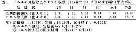 B 7月下旬から 8月下旬までビニルを除去すると、収量の増加が期待される(表省略)。