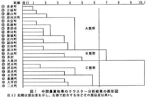 8指標を利用して主成分分析、クラスター分析を行った。ここでは中間農業地域の分析結果を示すと、以下のとおりであった。