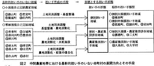 A都市的地域、平地農村地域でも同様に稲作の担い手の展開方向とその方法を示すことができる。