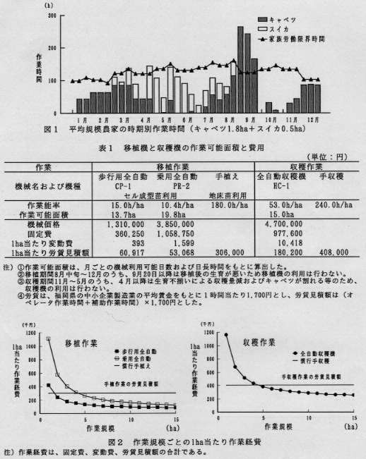 - 1 キャベツの機械化一貫体系の経営評価の基礎データとして利用する。