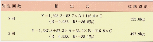 注) 推定式中の305日乳量の推定値、Aは分娩後72日目、Bは分娩後102日目、Cは分娩後