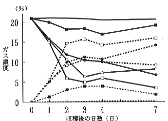 図1 出荷容器の違いがブロッコリーの雰囲気ガス濃度に