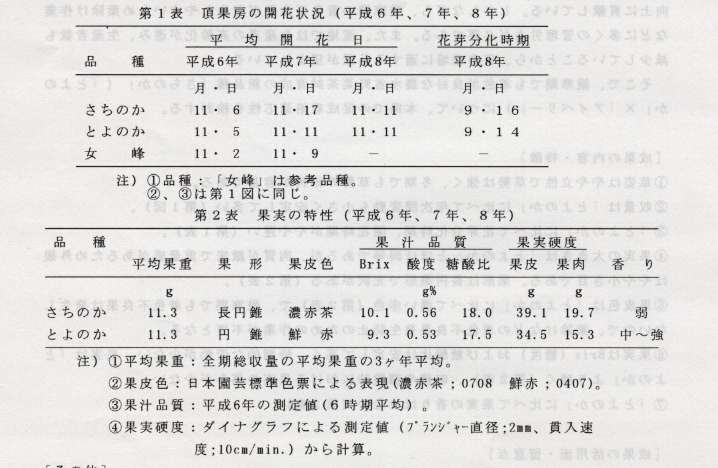 F「とよのか」に比べて果実の香りは少ない(第2表)。