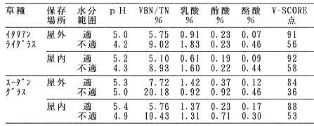 表1 各保存場所における6ヶ月保存後の発酵品質 (平成5〜6年)