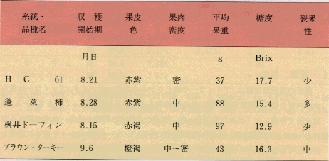 「HC−61」は、平成元年に「蓬莱柿」を母、「カプリフィッグ6085」を父として交配した組み合わせから育成した良食味系統です。