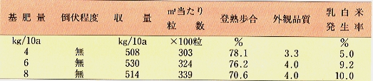 表 2 「ほほえみ」の基肥量と収量、品質