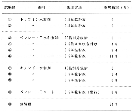 注)@処理方法の%は乾燥種子重量に対する薬剤の量