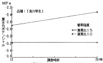 図1 着果程度と葉水分ポテンシャルの日変化        図2 着果程度と葉水分ポテンシャルの日変化
