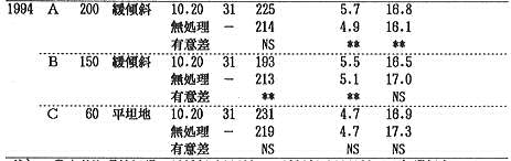 表1 カキ’富有’の透湿性シートマルチ処理と果実品湿(平成5,6年)